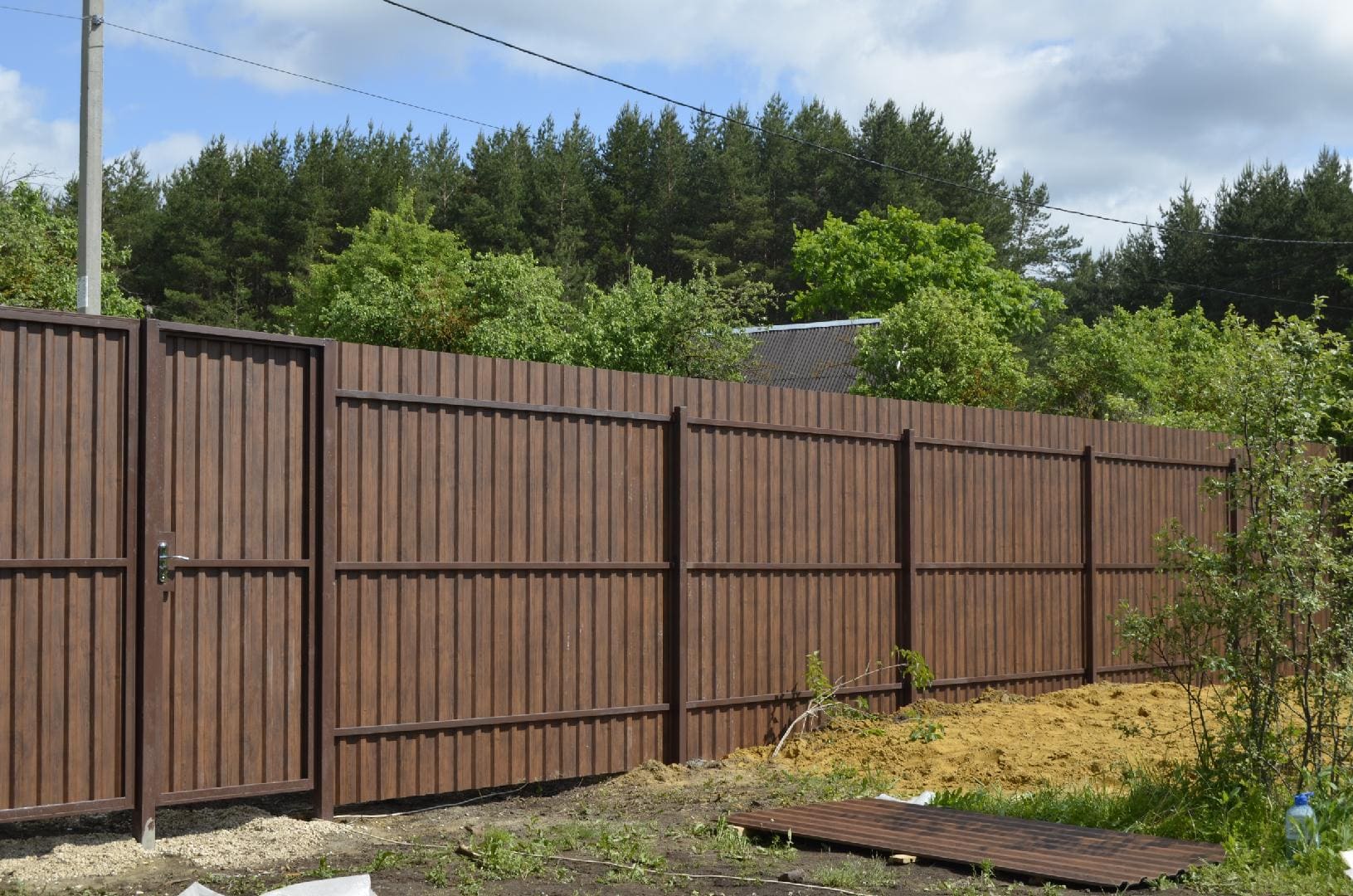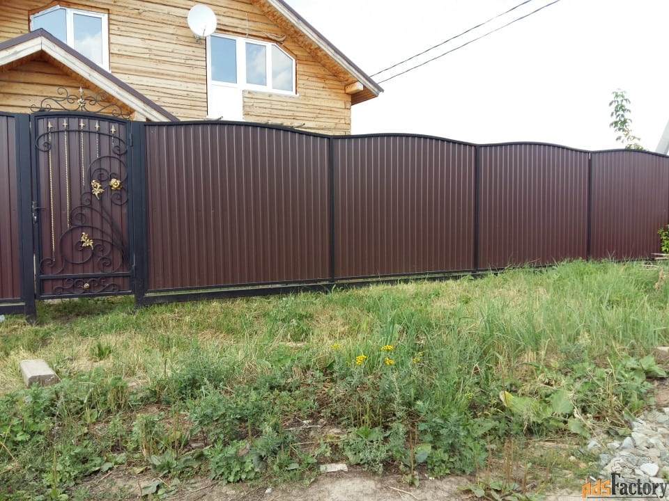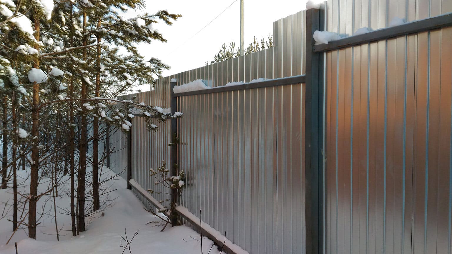 Забор из металлопрофиля — это один из самых популярных видов ограждений для дачных участков и коттеджей в черте города. Такие заборы обладают прочностью и долговечностью, имеют несложную конструкцию. В нашей компании вы сможете заказать изготовление и установку забора из профлиста «под ключ».