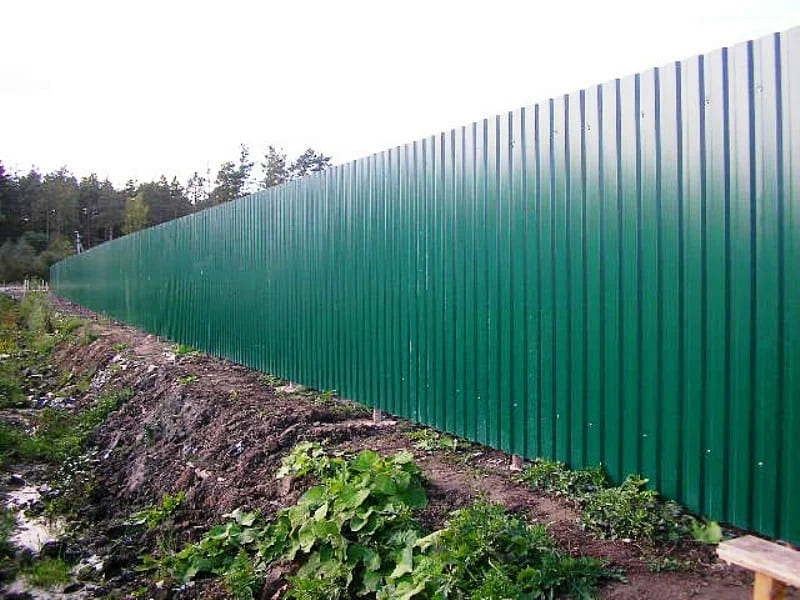 Заборы из металлопрофиля обладают высокой прочностью и долговечностью. Они могут быть горизонтальными или вертикальными, выполнены различными видами профиля. Преимущества включают в себя легкость монтажа, красивый внешний вид, и возможность выбора различных цветов по каталогу RAL.